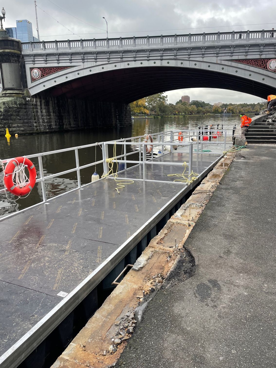 The pontoons can be connected and configured for any required purpose and fitted with solid handrails and steel decking as required.