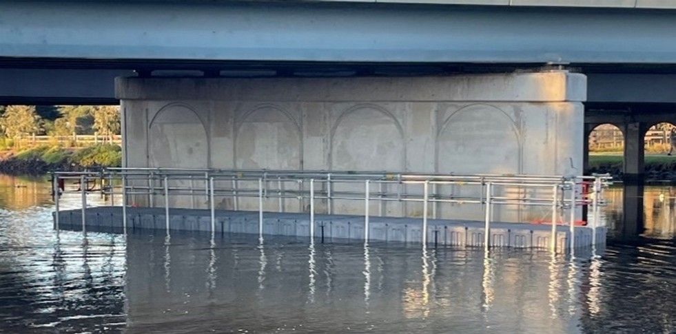 The pontoons are unique in that one day they can be a square work platform, and the next a horse shoe shaped work platform for use around piles, and the next a jetty or a bridging ramp. The pontoons can be supplied for safe over water access or as an option to access Bridge pillars and pylons